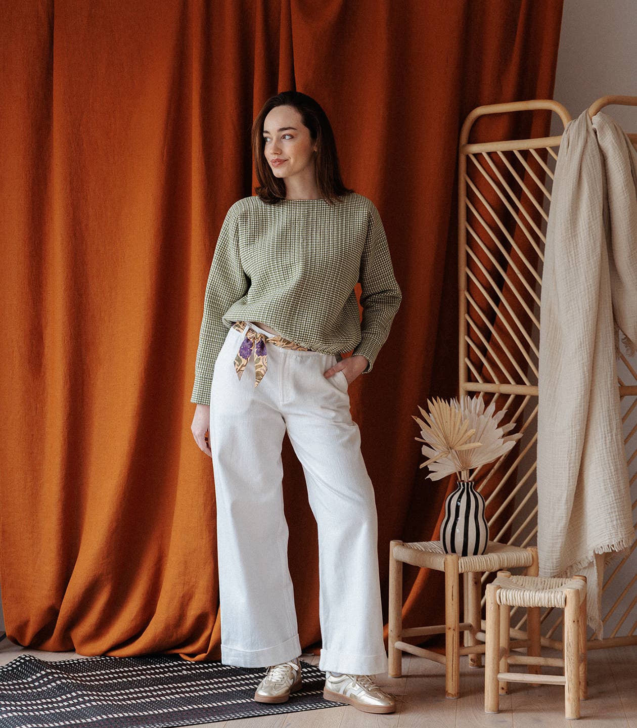 Quilted Gingham Dressmaking Fabric 'Kiwi Green' by French Designer Cousette