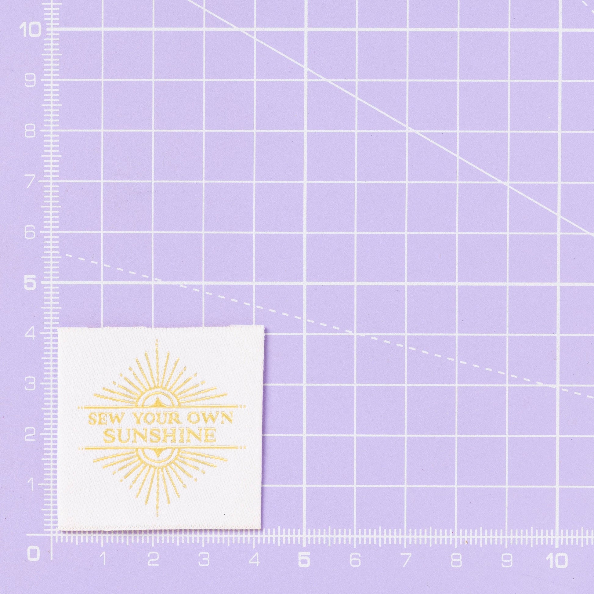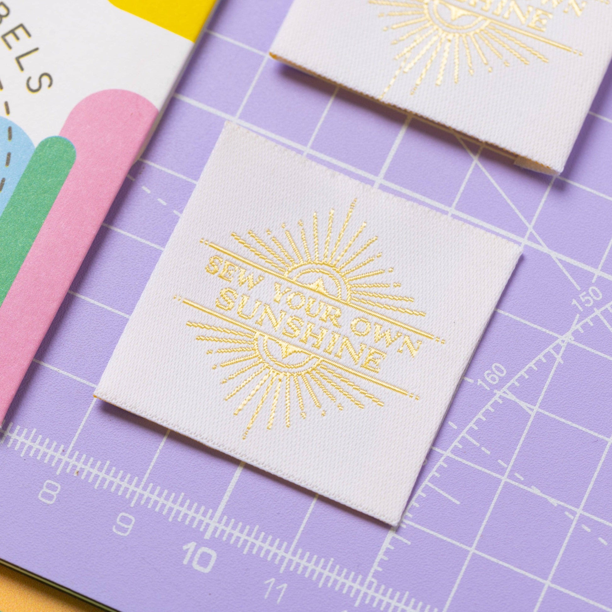 Add a burst of joy to your handmade creations with these 'Sew Your Own Sunshine' woven labels.