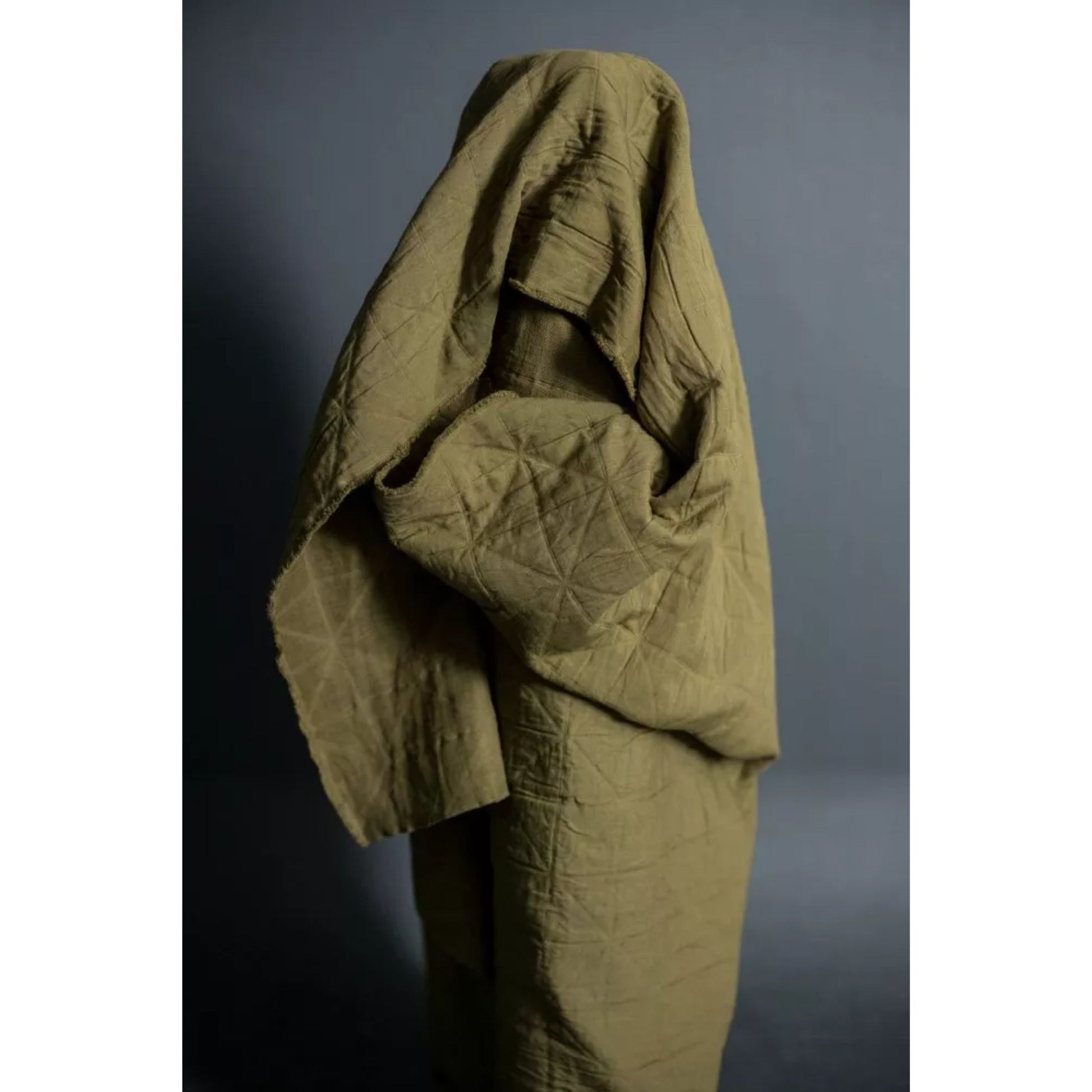 The reverse has a soft and gauzy feel making it extremely comfortable to wear against the skin. The inside is made up of a series of thicker yarns which give it the quilted feel. The top is a fine soft cotton.